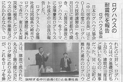 2016年3月31日(木)に行われた「ログハウス技術講習会」の様子が業界紙に掲載されました。