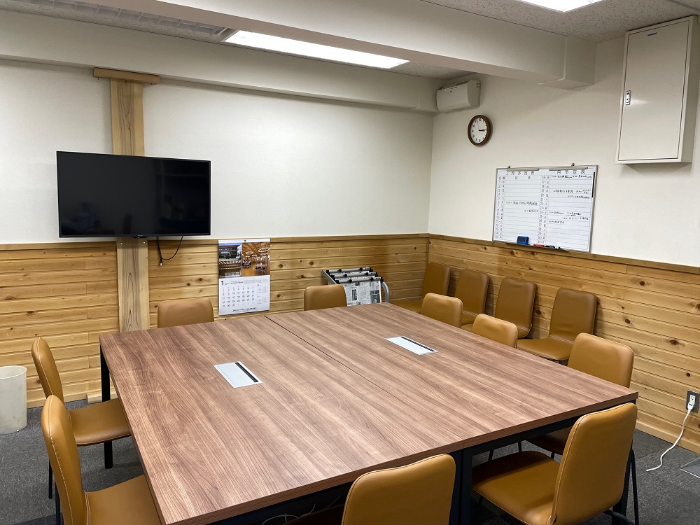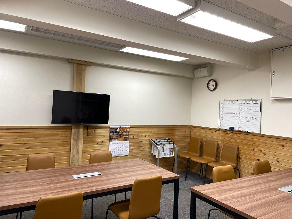 事務局内のサロンスペースは、2、3名から10名までのミーティングにご利用いただけます。ウェブミーティングにも対応しておりますので是非ご活用ください。