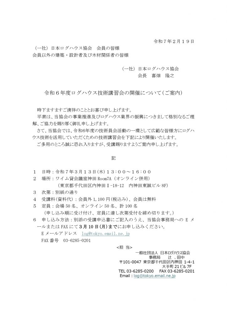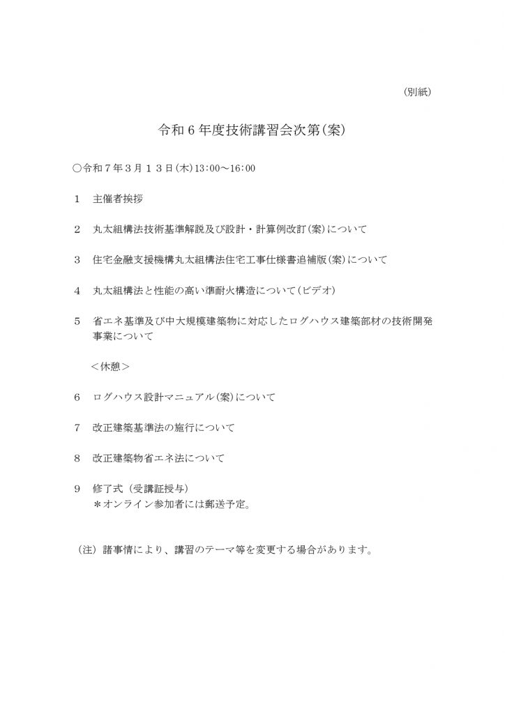 TOP > 新着情報一覧 > 令和6年度ログハウス技術講習会開催案内