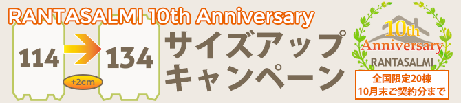 ランタサルミの標準ログ・LM114(114mm厚ラミネートログ)の価格で、LM134(134mm厚ラミネートログ)にサイズアップできる「サイズアップキャンペーン」を開催中!