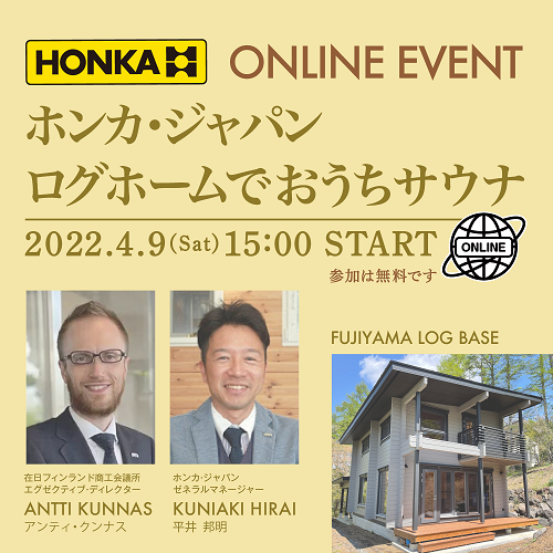 ホンカのオンラインイベント「ログホームでおうちサウナ」を4月9日15時から開催します!