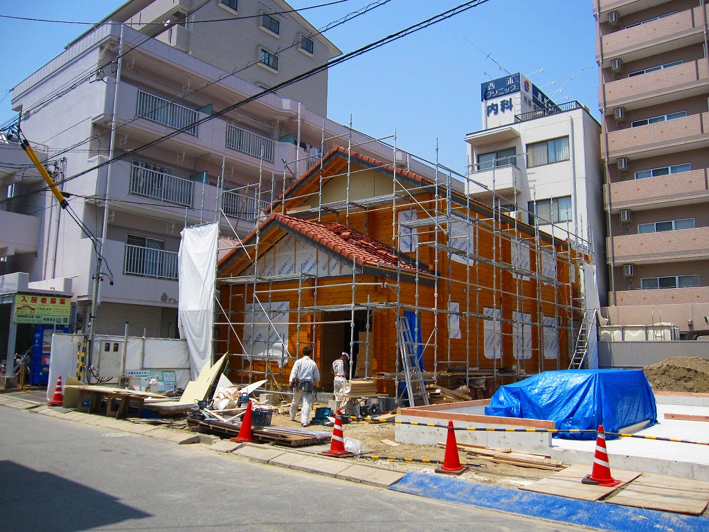 マシンカットにて建築中の2階建てログハウスの完成見学会を6月28日(土)~29日(月)に行います。