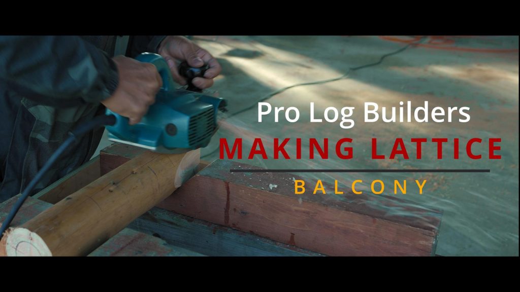 曲面鉋で器用に先端を削りログハウスに似合う手摺りの格子を作っていく様子を