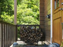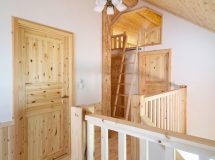 親子3人で暮らす、2LDK+デッキ&バルコニー付きのログハウスです