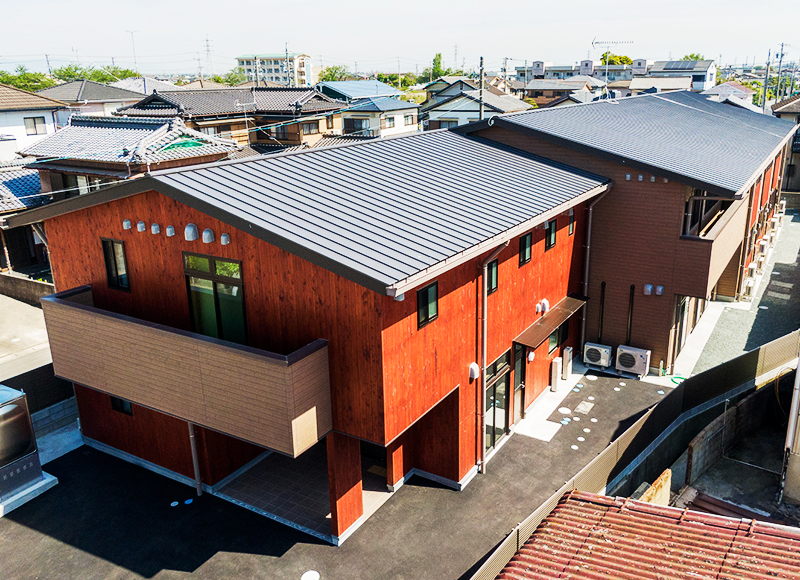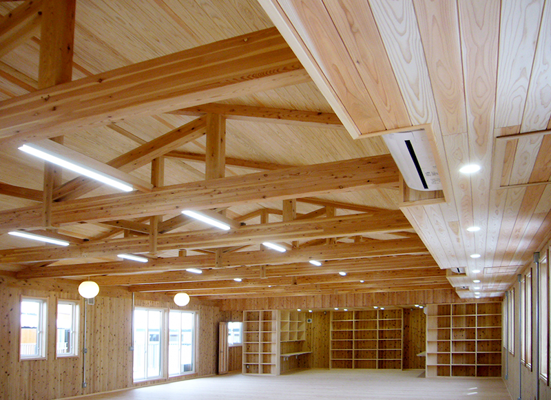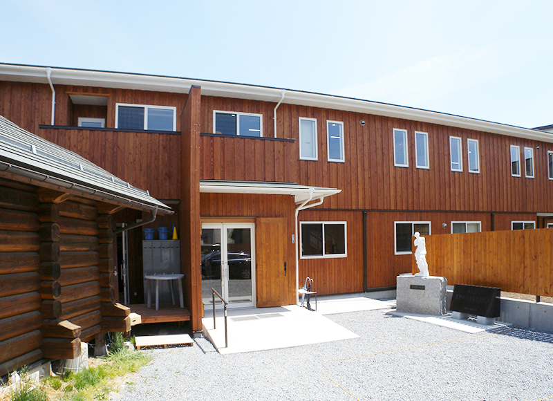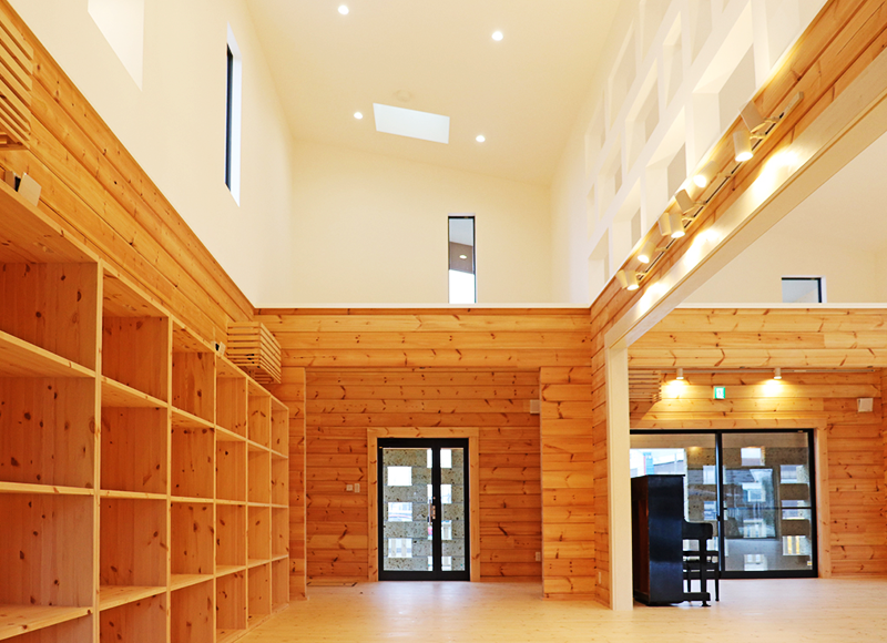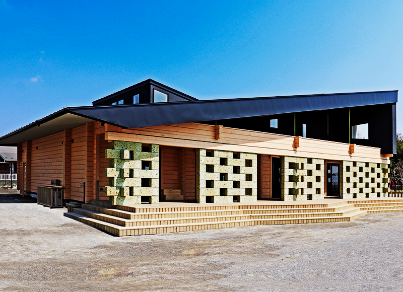 新時代モダンログハウス、 大谷石と融合したログハウス保育園遊戯施設 |