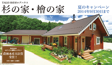 良質な国産杉・国産檜をJAS認定工場で加工しているTALO国産材ログハウスを期間限定特別価格でご提供!