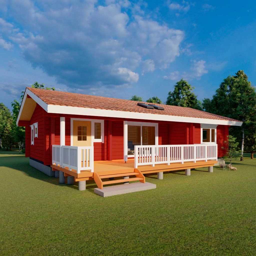 国産の檜ログを使用した、2LDKのコンパクトな平屋です。