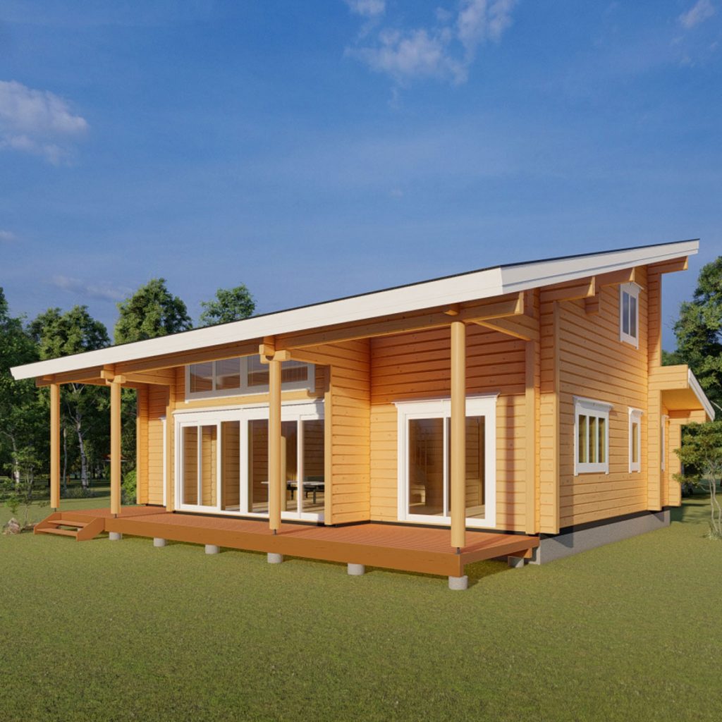 フィンランドパインを使用した、片流れ屋根の平屋モデルの構造見学会です。