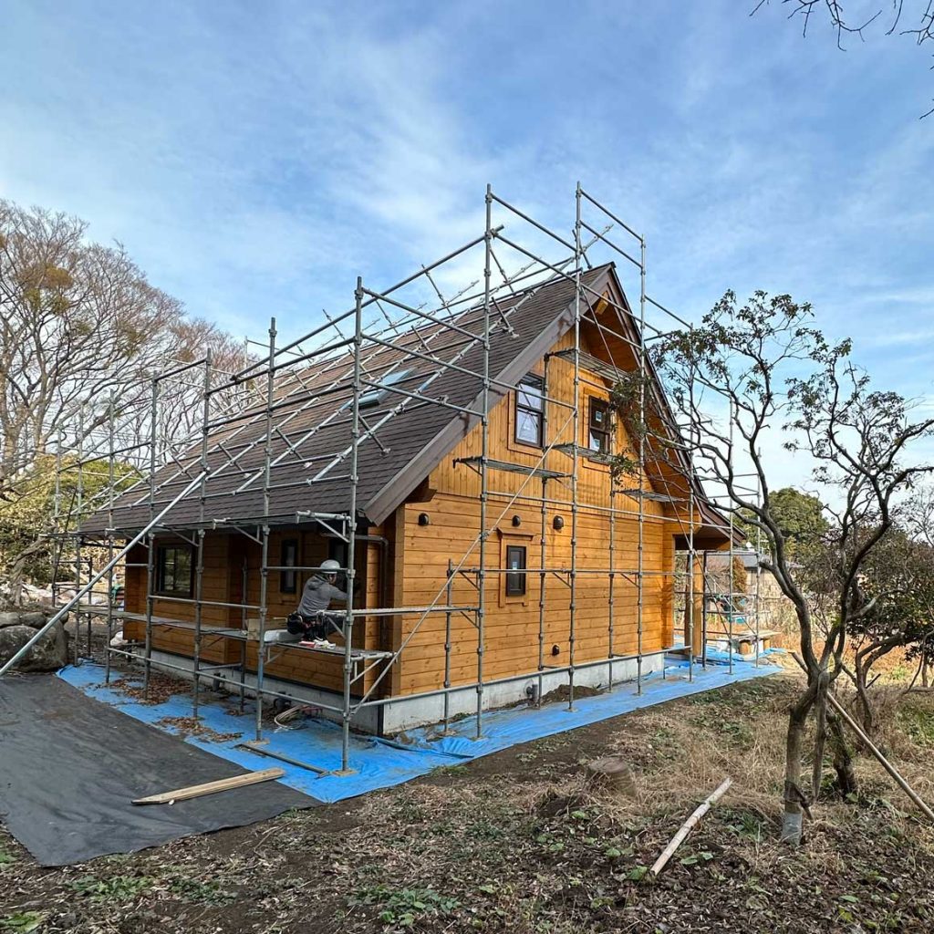 厚み134cmのログ材を使用した、人気の折れ屋根ログハウスです!