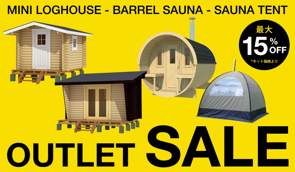 【在庫一掃】アウトレットセール開催!ミニログハウスやサウナをキット価格10%OFFでご提供。さらに2点以上の同時購入で、全商品がキット価格15%OFFに!