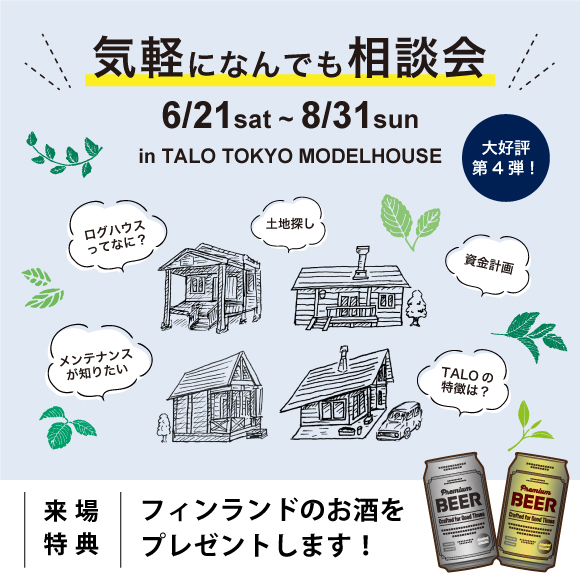 「まずはログハウスを見てみたい」という方でも大歓迎!家づくりにまつわるさまざまな悩みや疑問をお持ちの方も、ぜひお気軽にご来場ください。※事前予約制です。