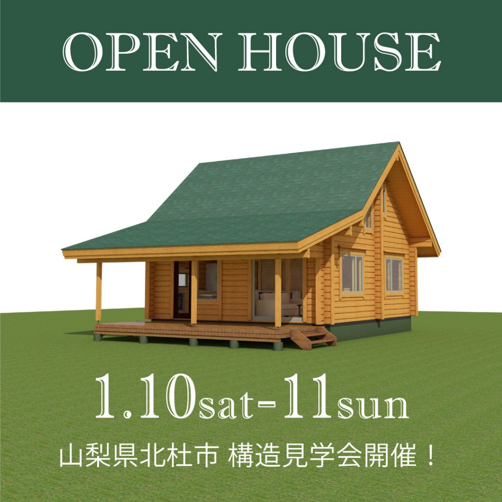 Versoログを使用した初の構造見学会。眺めを活かした大きな開口や、屋根のかかった広々テラスが特徴的な、延床面積約80㎡(24坪)の別荘ログハウスです。重厚で迫力のあるログハウスの構造を、ぜひその目でお確かめください。
